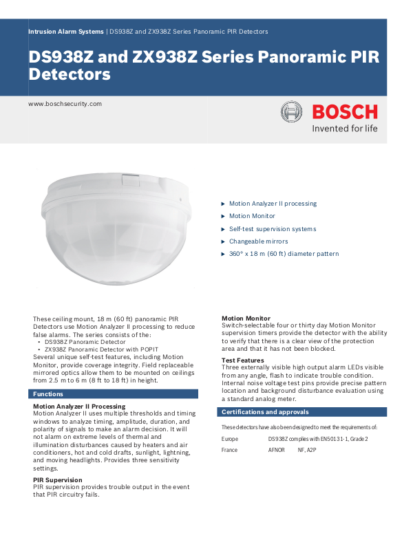 3 | DS938Z and ZX938Z Series Panoramic PIR Detectors