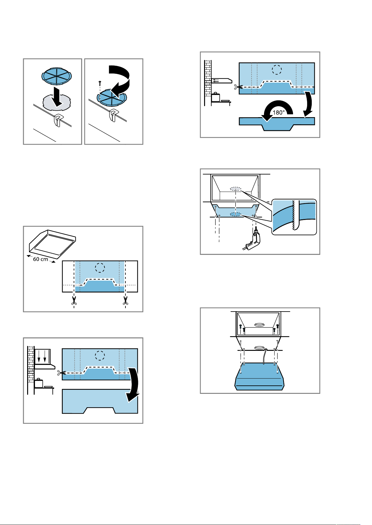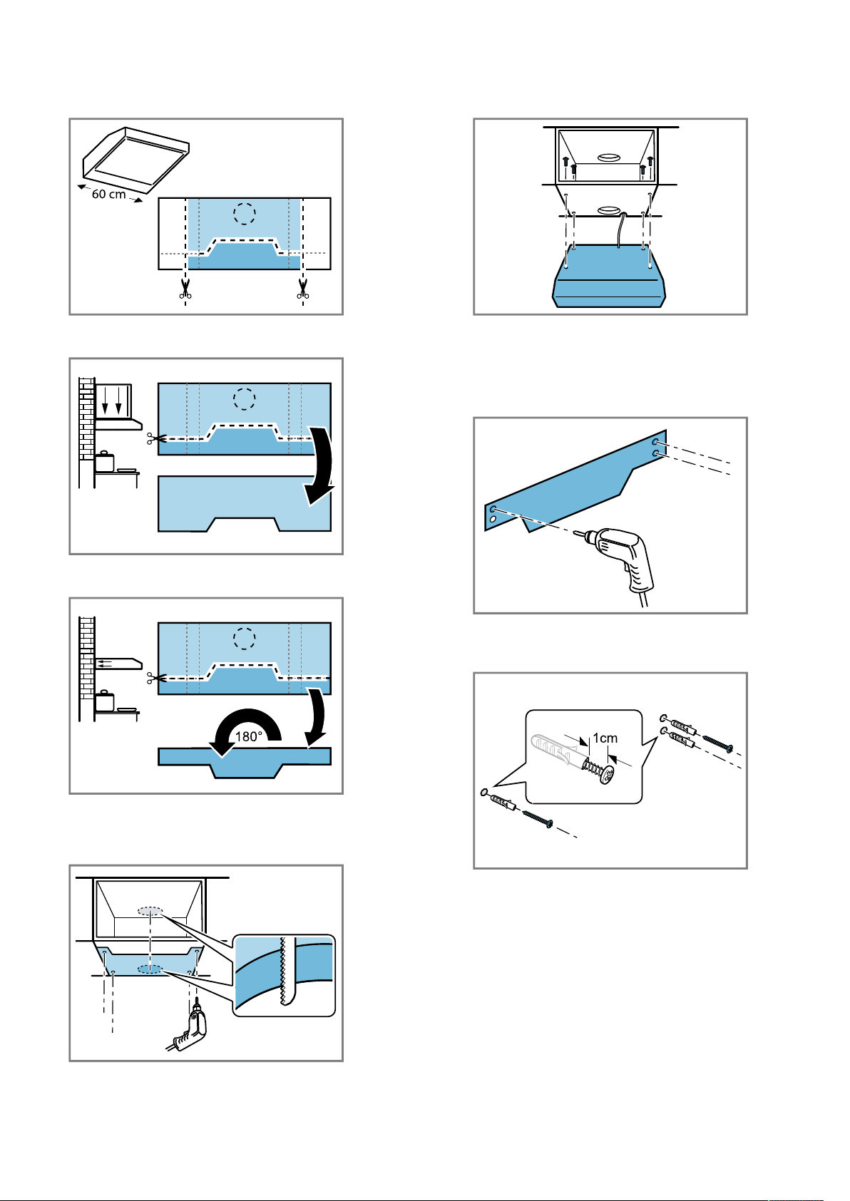 Si l'appareil est fixé au meuble haut, coupez le gabarit de perçage selon l'illustration suivante.