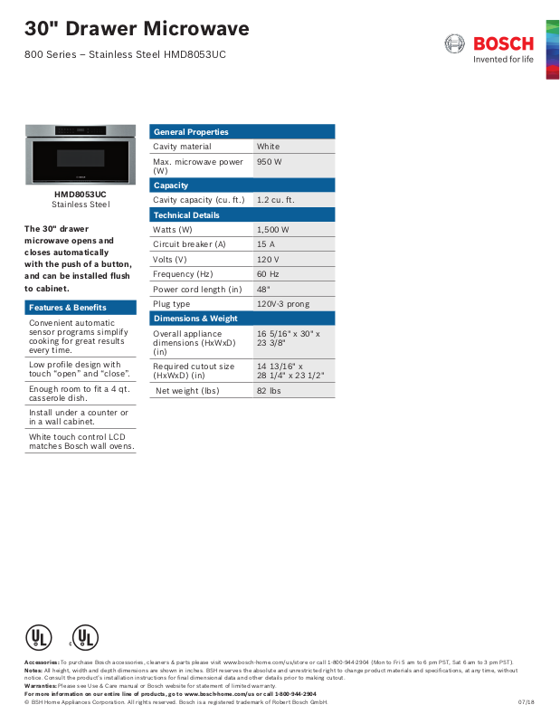 © BSH Home Appliances Corporation. All rights reserved. Bosch is a registered trademark of Robert Bosch GmbH. 07/18