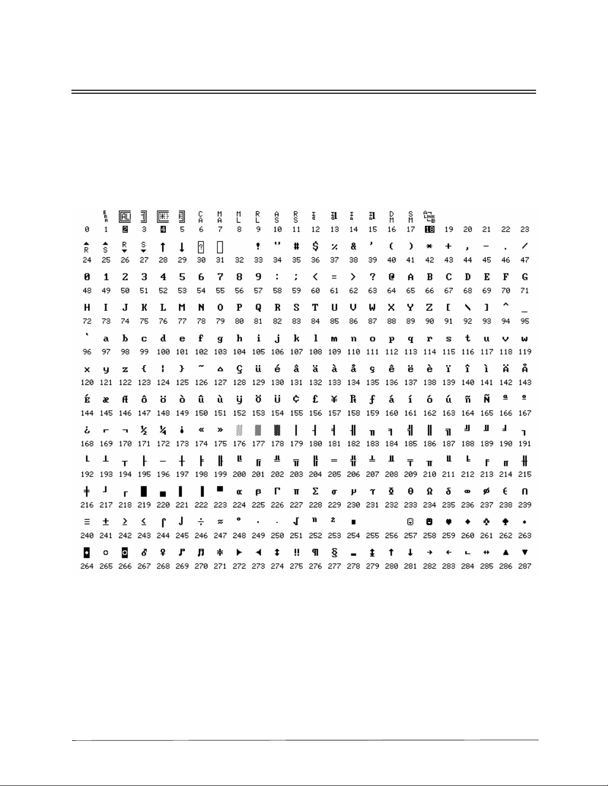 on the following pages. Note that in some cases, a single character may be comprised of two (2) parts. Such characters must be entered so that the left half of the