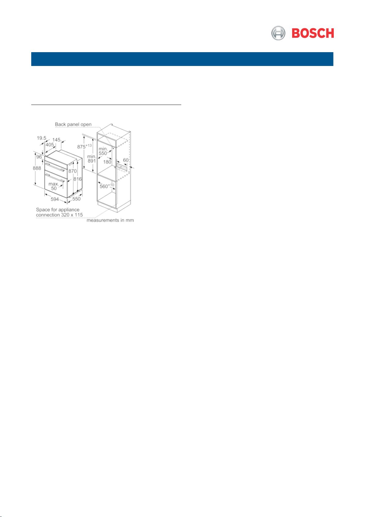 Installation dimensions (HxWxD): 875 mm - 888 mm x 560