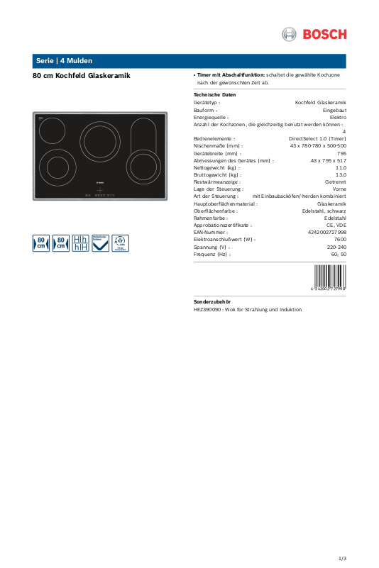 Gerätetyp : Kochfeld Glaskeramik
