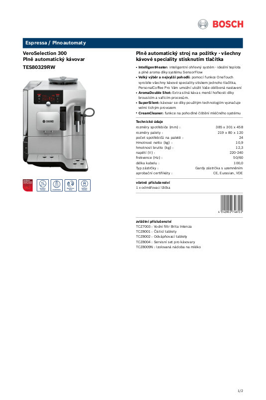 Volitelné příslušenství: čistící tablety (TCZ8001), odvápňovací