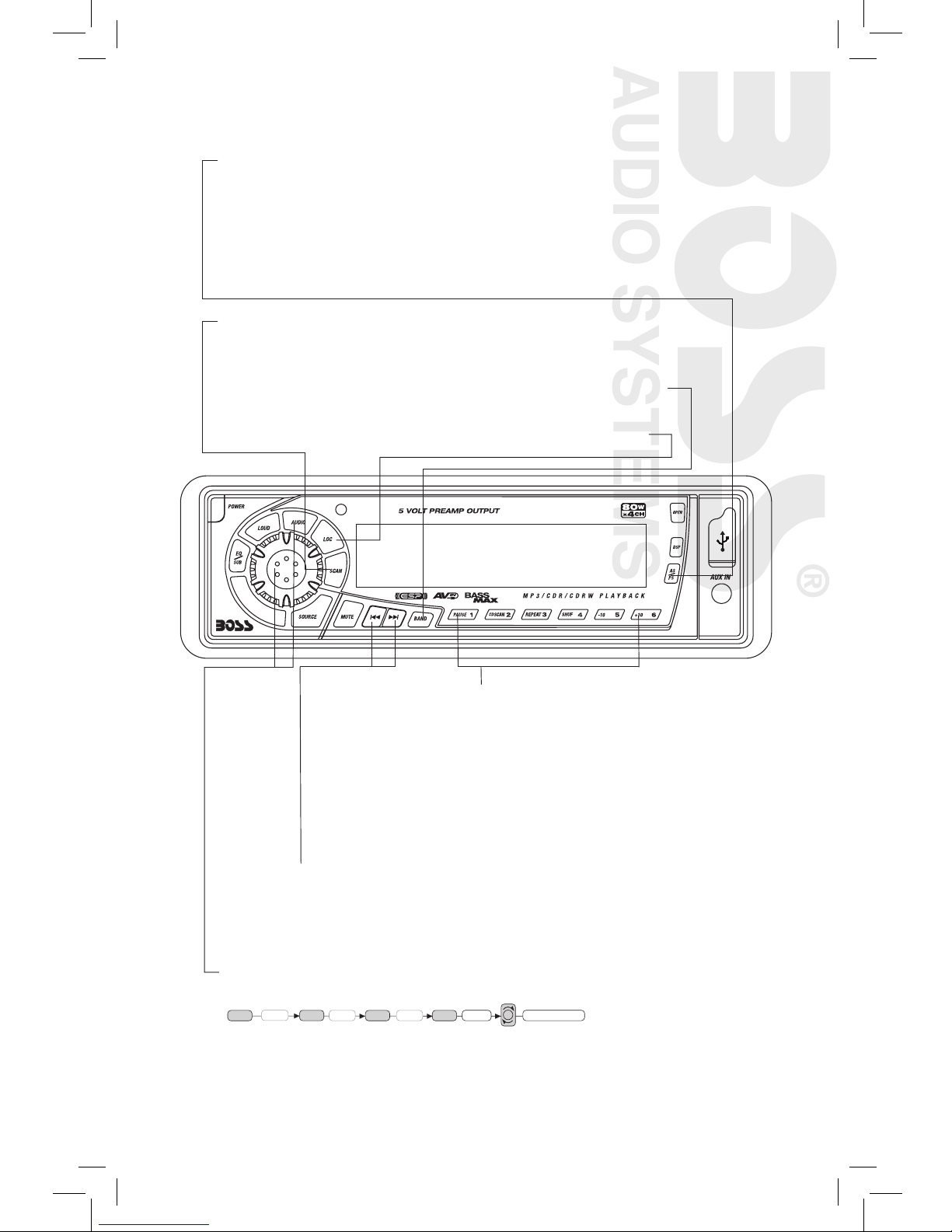 • Rotary “VOL knob to right or left”, you can select the desired song.