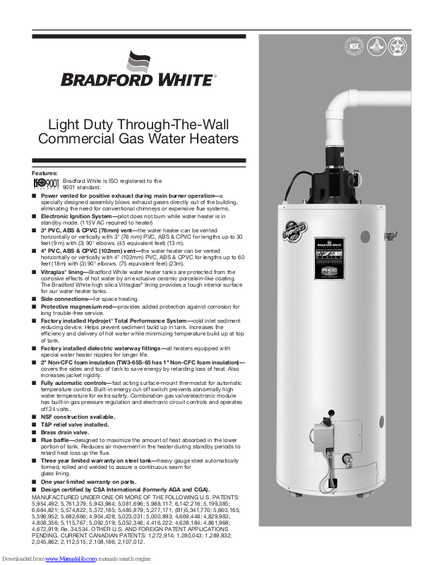 ■ Vitraglas®lining—Bradford White water heater tanks are protected from the