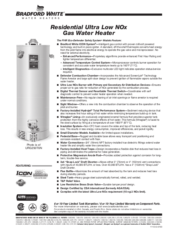 , ScreenLok®, Vitraglas® and Hydrojet® are registered trademarks of Bradford White® Corporation.