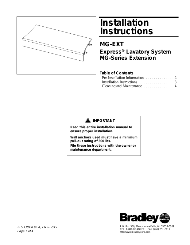 Bradley Corporation • 215-1384 Rev. A; EN 01-819