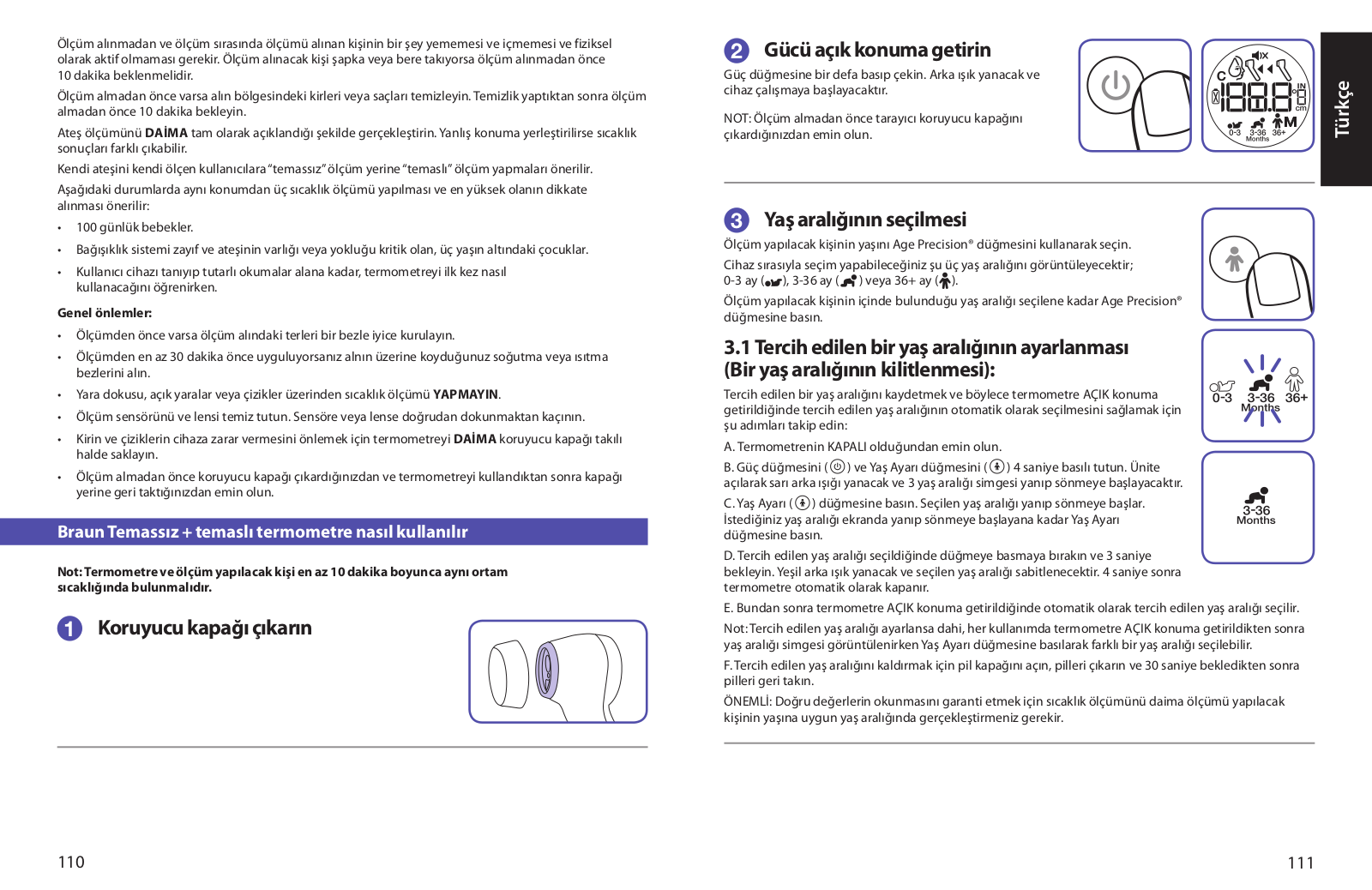 IMPORTANT: To ensure accurate readings, you must always take a temperature reading in the age range that corresponds to the individual's age.