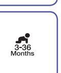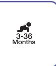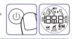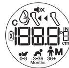 Device will start cycling through the age ranges, highlighting the 3 ranges you may select; 0-3 months (ag), 3-36 months (ag), or 36+ months (a).