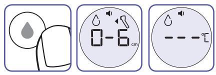 When the thermometer is ready and on or 2.5 cm away from the forehead a horizontal line of dashes ("---") will appear on the screen.