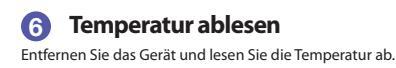 If temperature is in the normal range, a long beep will sound when the measurement is complete. If the temperature is in the fever range, ten short beeps will sound to indicate the measurement is complete.