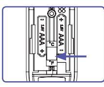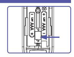 başladığında pilleri 2 adet yeni AAA pille değiştirin. Pilleri değiştirmek için pil kapağını kaydırarak açın ve pilleri çıkarın. Yeni pilleri pil bölmesinin içinde gösterildiği gibi yerleştirin. Olası pil sızıntıları nedeniyle termometrede hasar meydana gelmesini önlemek için, uzun bir süre kullanmayı düşünmüyorsanız termometredeki pilleri çıkarın.
