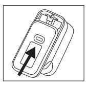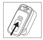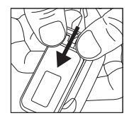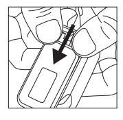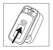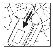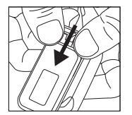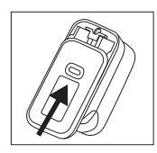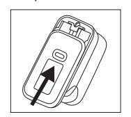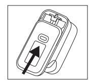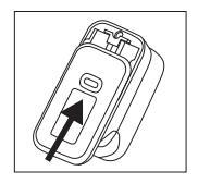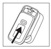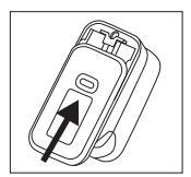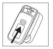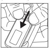 Push on the edge of the battery cover behind the arrows to slide it from the device.
