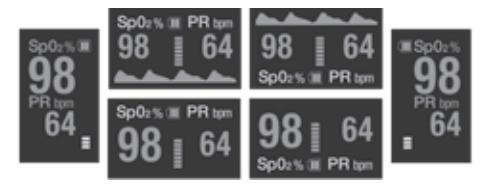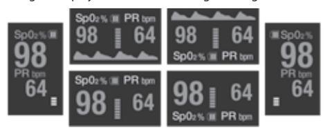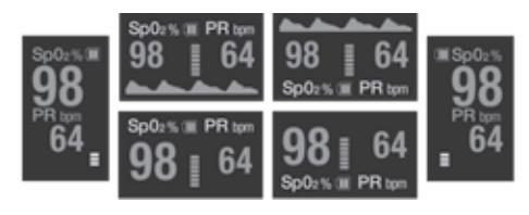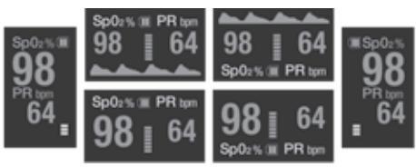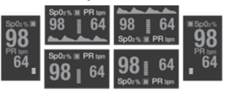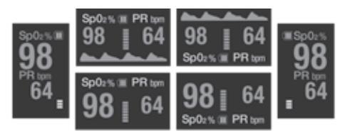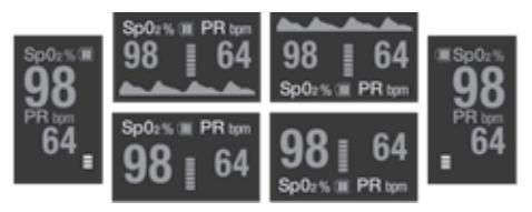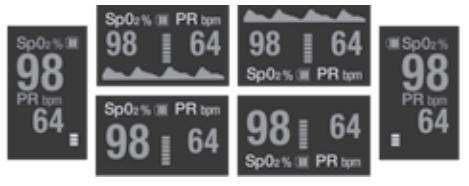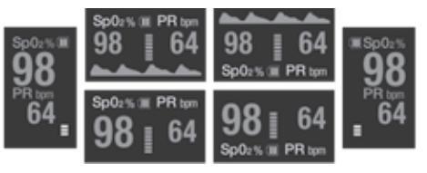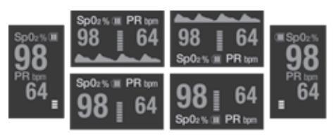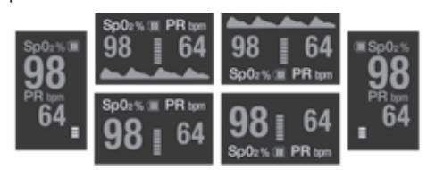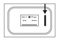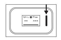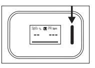 The Pulse oximeter displays the %SpO2, pulse rate, as well as the pulse amplitude using a vertical bar graph.