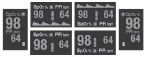 Press the Power/Menu button to turn on the device. With the device turned on, press and hold the Power/Menu button to change the display mode.