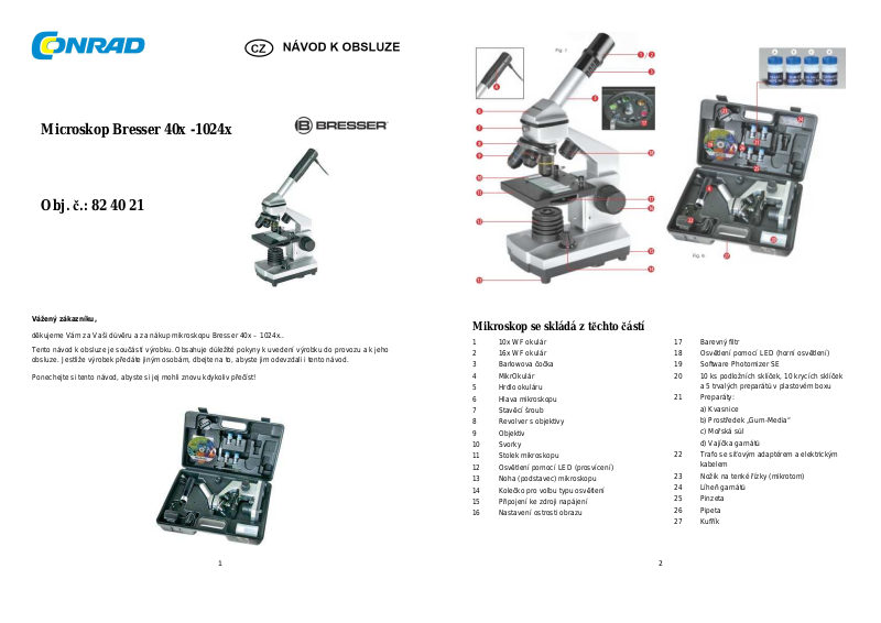 děkujeme Vám za Vaši důvěru a za nákup mikroskopu Bresser 40x – 1024x..