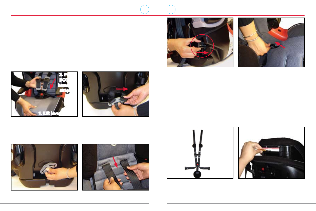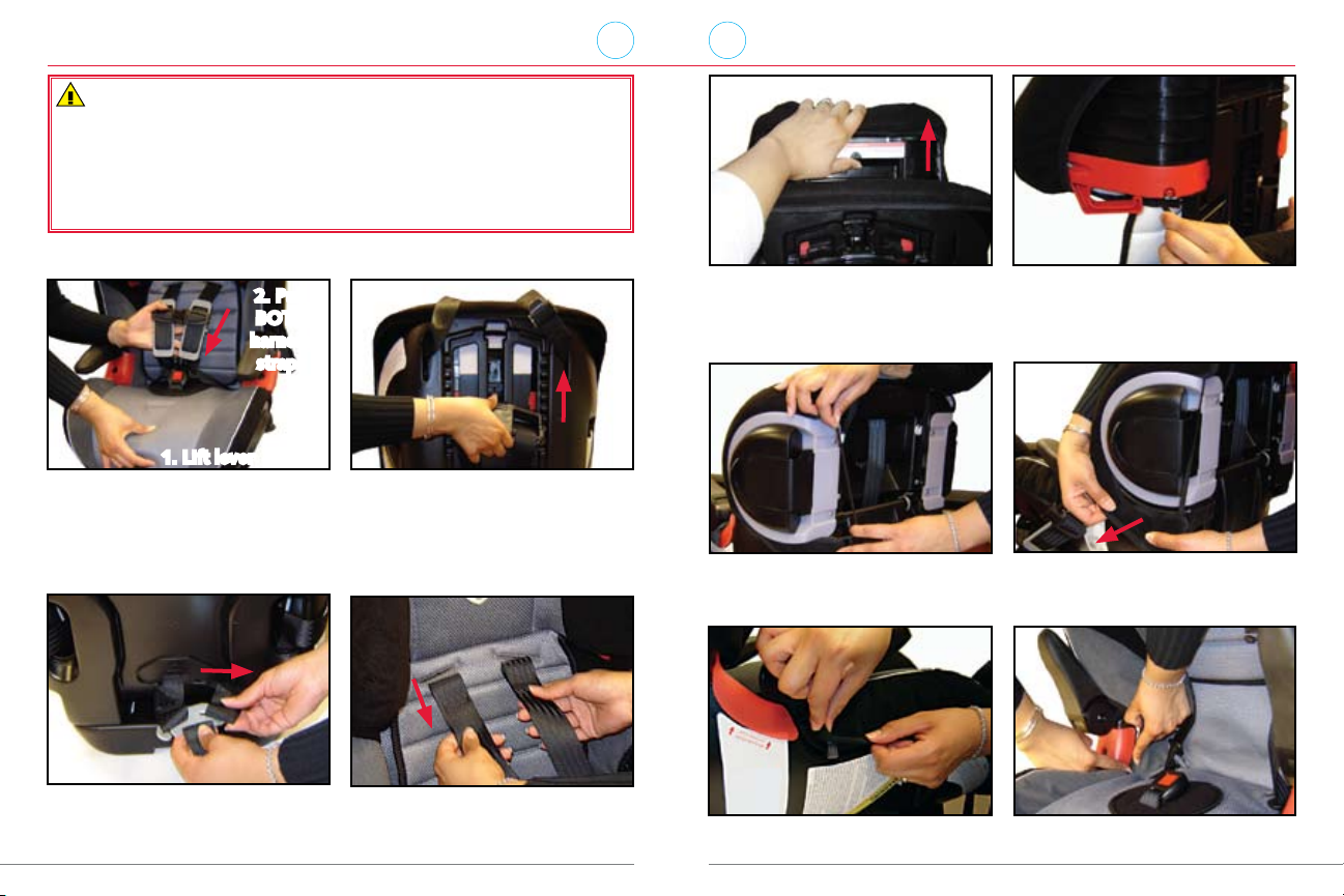 Never use the harness or adjuster strap to lift or carry this child seat. •