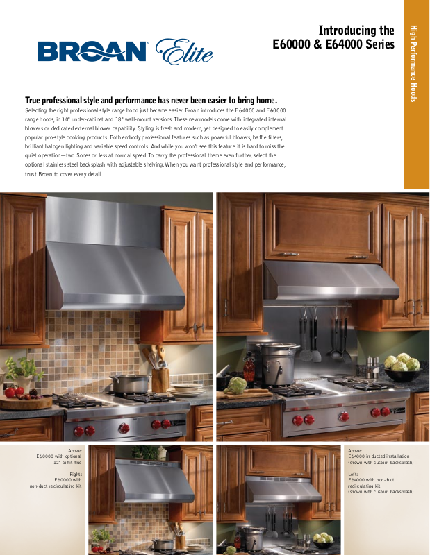 Selecting the right professional style range hood just became easier. Broan introduces the E64000 and E60000