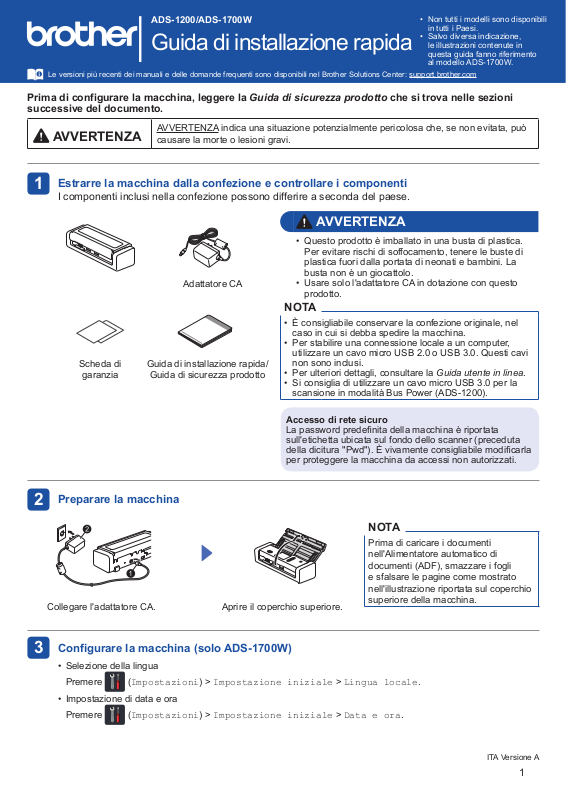 Prima di configurare la macchina, leggere la Guida di sicurezza prodotto che si trova nelle sezioni