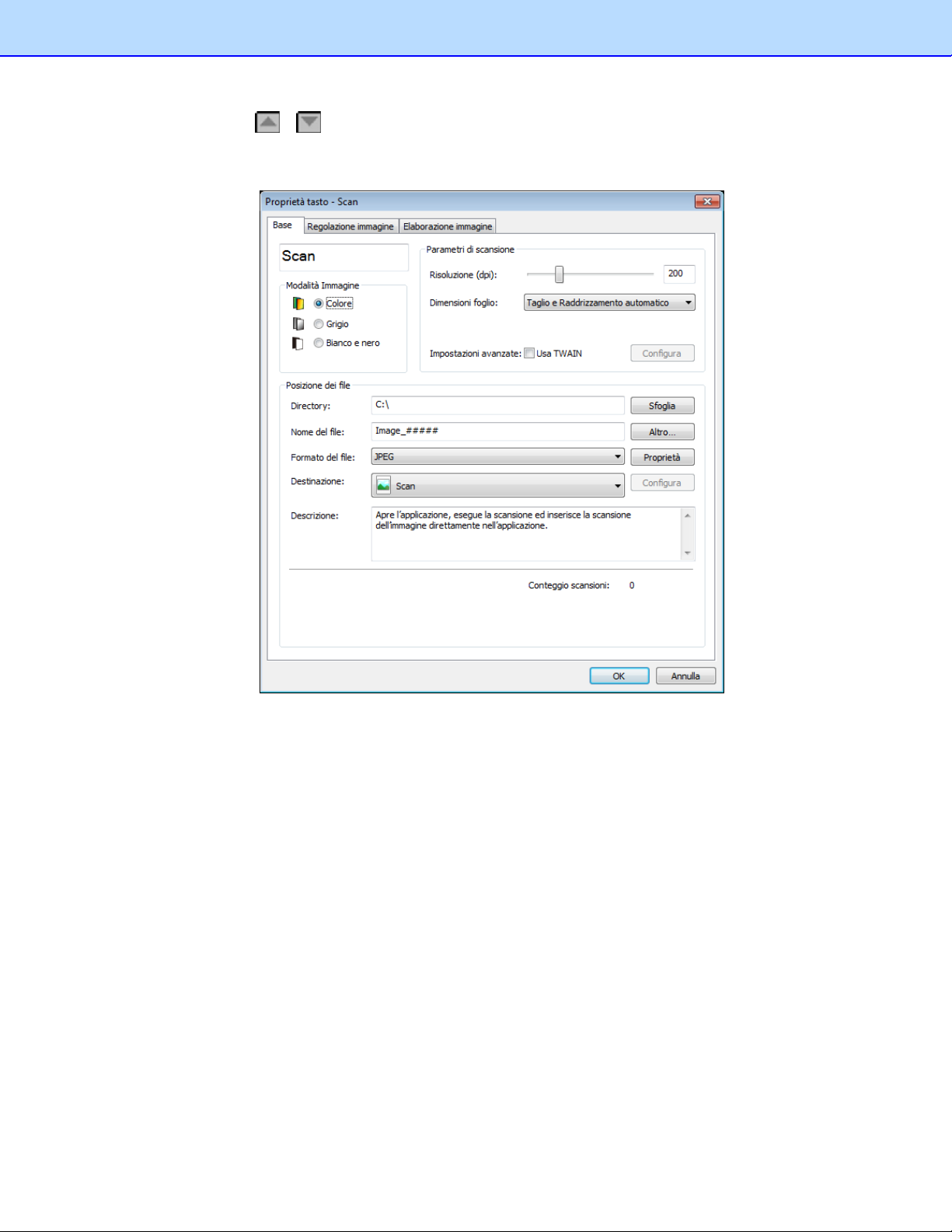 Per impostazioni di scansione più avanzate, usare l'interfaccia utente TWAIN di Button
