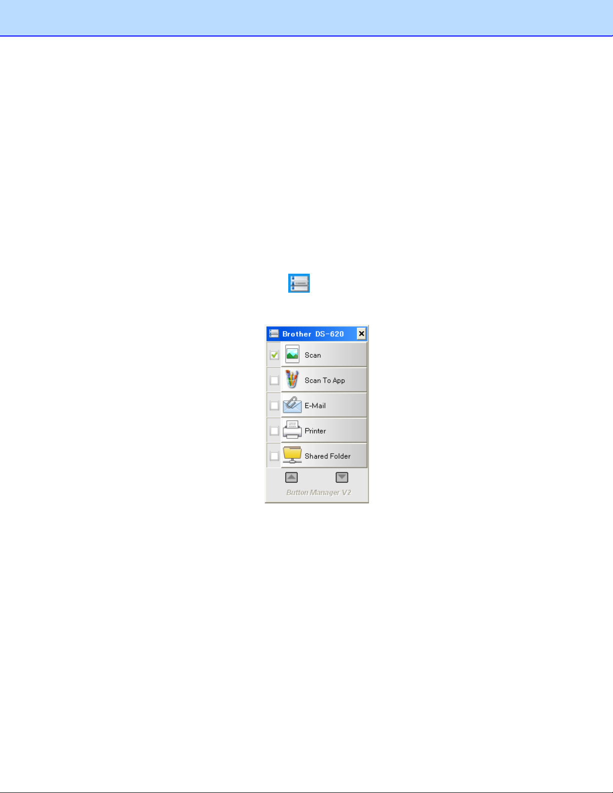 Dopo il riavvio, Button Manager V2 si avvia automaticamente quando lo scanner è collegato e