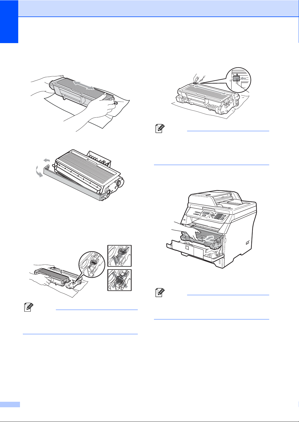 e 将墨粉盒牢固地 装入新的 硒鼓单