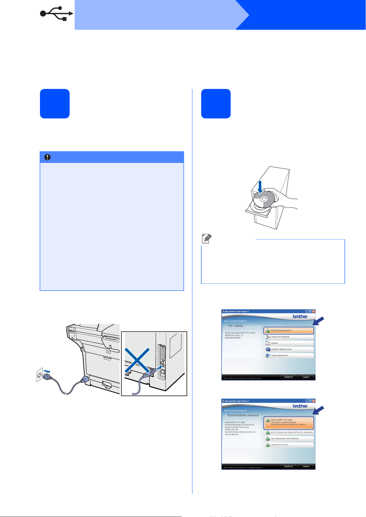 • ÄLÄ kytke liitäntäkaapelia tässä vaiheessa. Liitäntäkaapeli kytketään MFL-Pro-ohjelmiston asennuksen