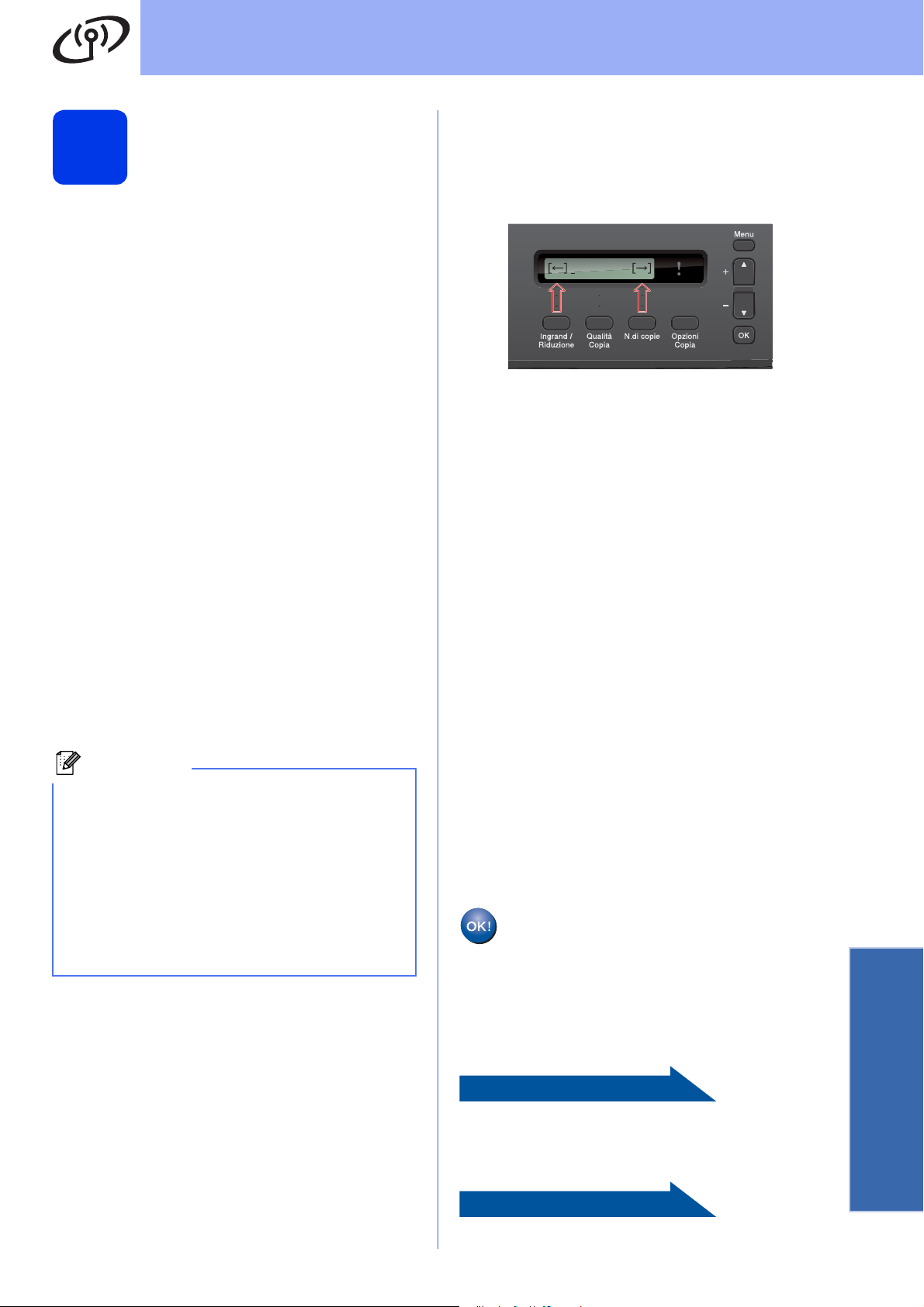 Premere il tasto Ingrand/Riduzione o il tasto N.di copie per spostare il cursore a sinistra o a destra.