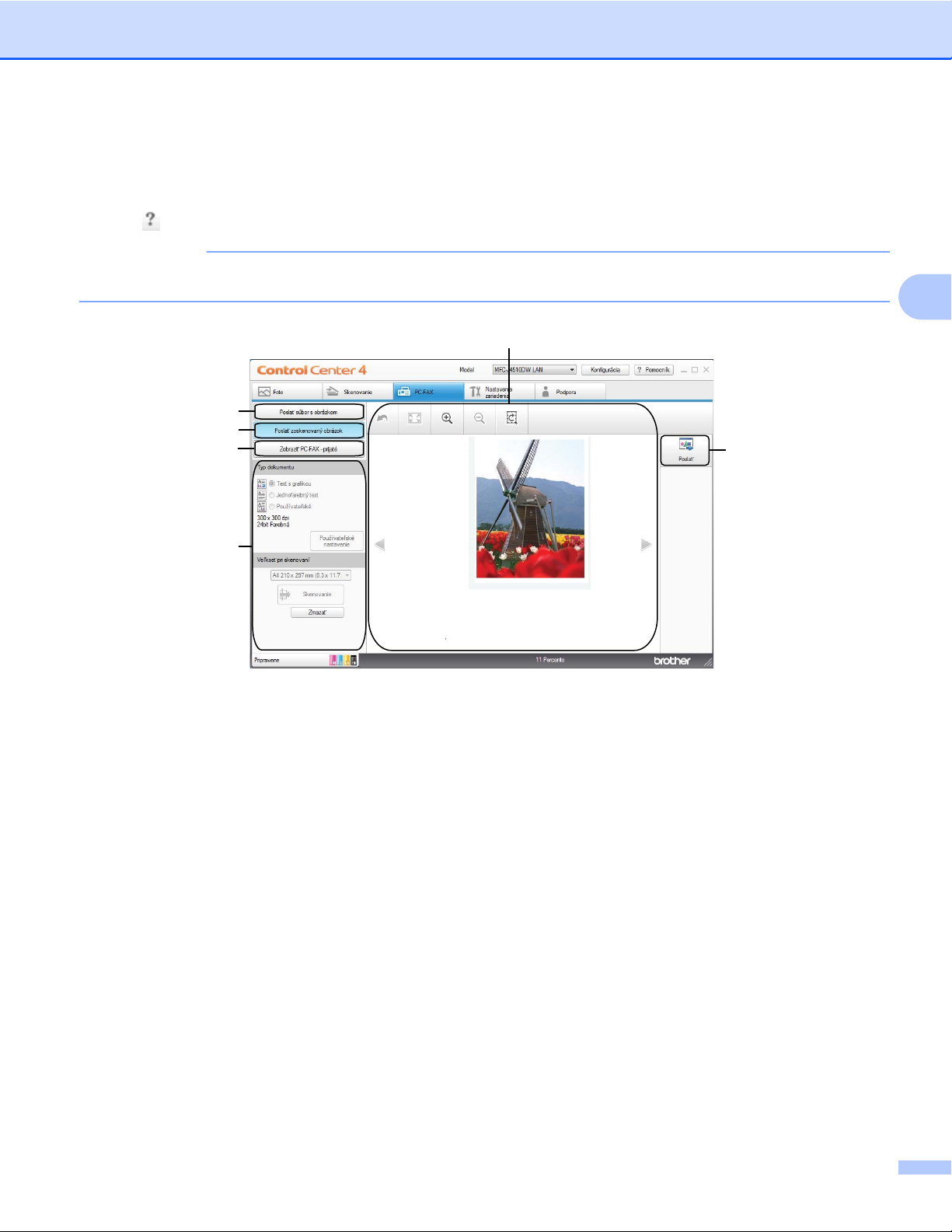 Tlačidlo (Pomocník pre ControlCenter) umožní otvoriť súbor Pomocník, v ktorom nájdete podrobnejšie