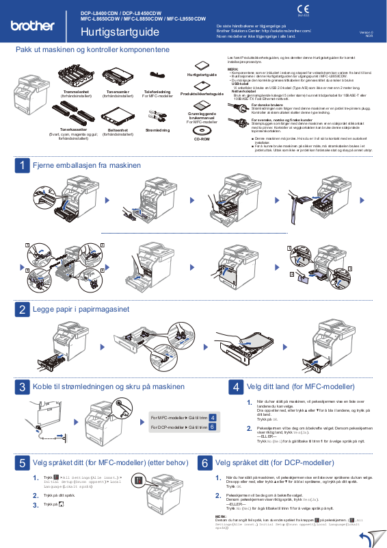 Illustrasjonene i denne Hurtigstartguiden tar utgangspunkt i MFC-L8850CDW.•
