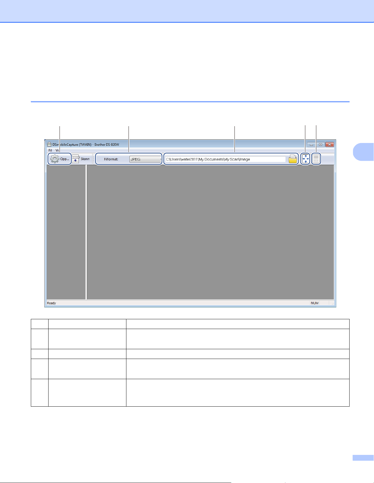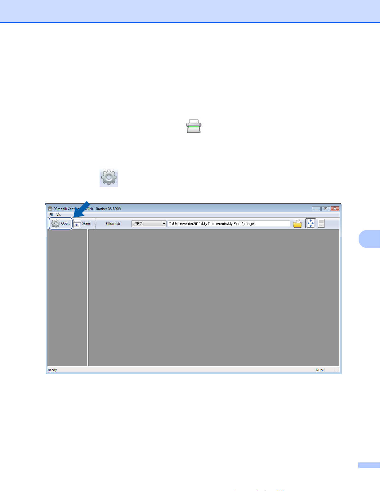 Trykk for å starte skanning ved hjelp av DSmobileCapture. (Bare tilgjengelig når et dokument blir satt