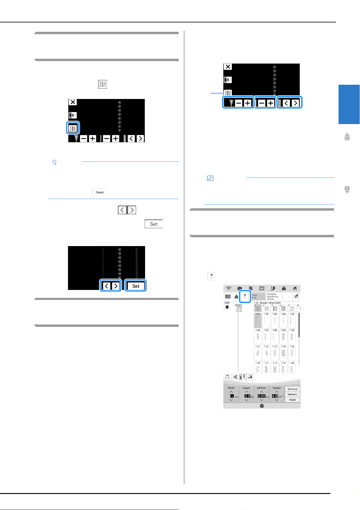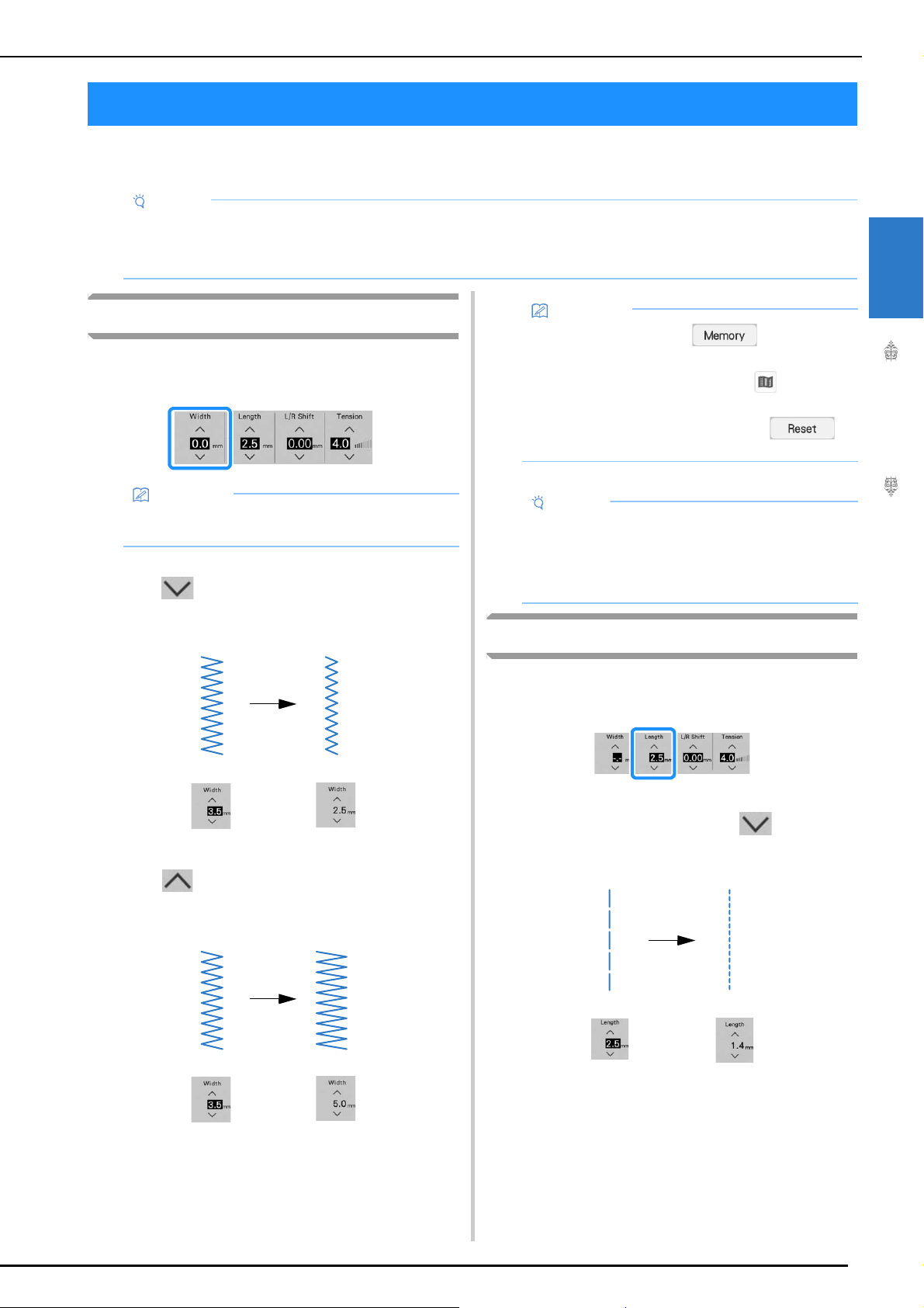 選択した模様の振り幅とぬい目の長さを示します。 と を押すと、