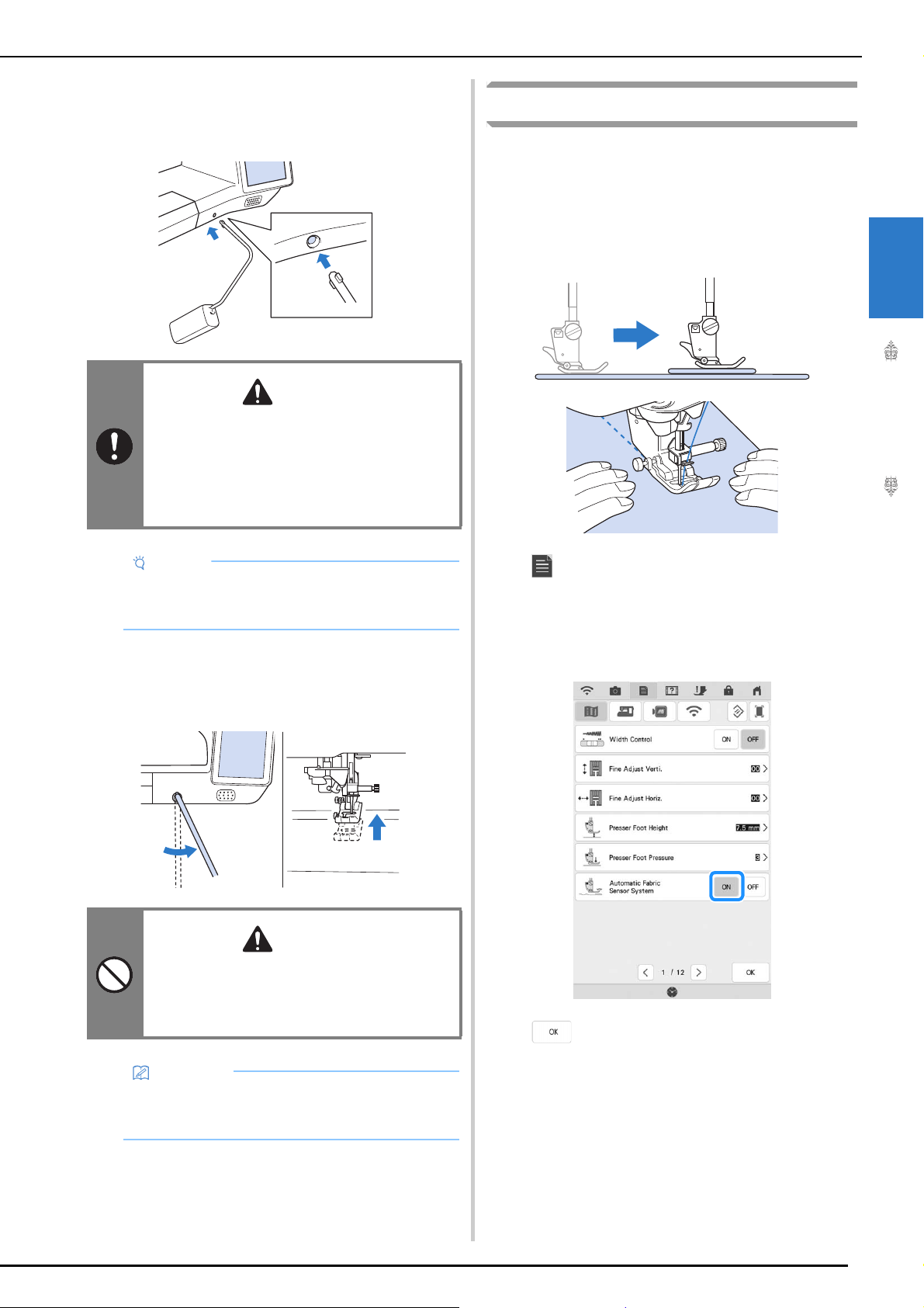 ( 誤ってスイッチを押すと、 ミシンが作動す
