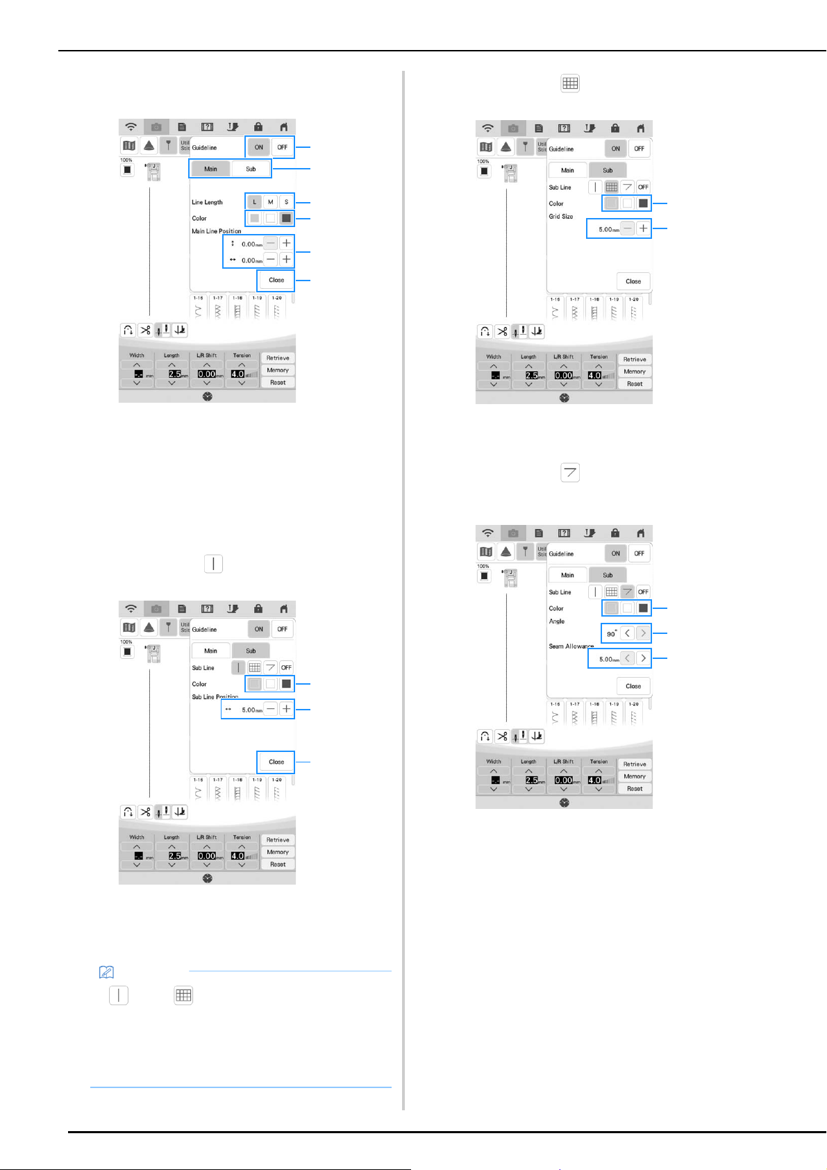 ぬい目を示すガイドラインマーカーを表示または設定するときに押します。