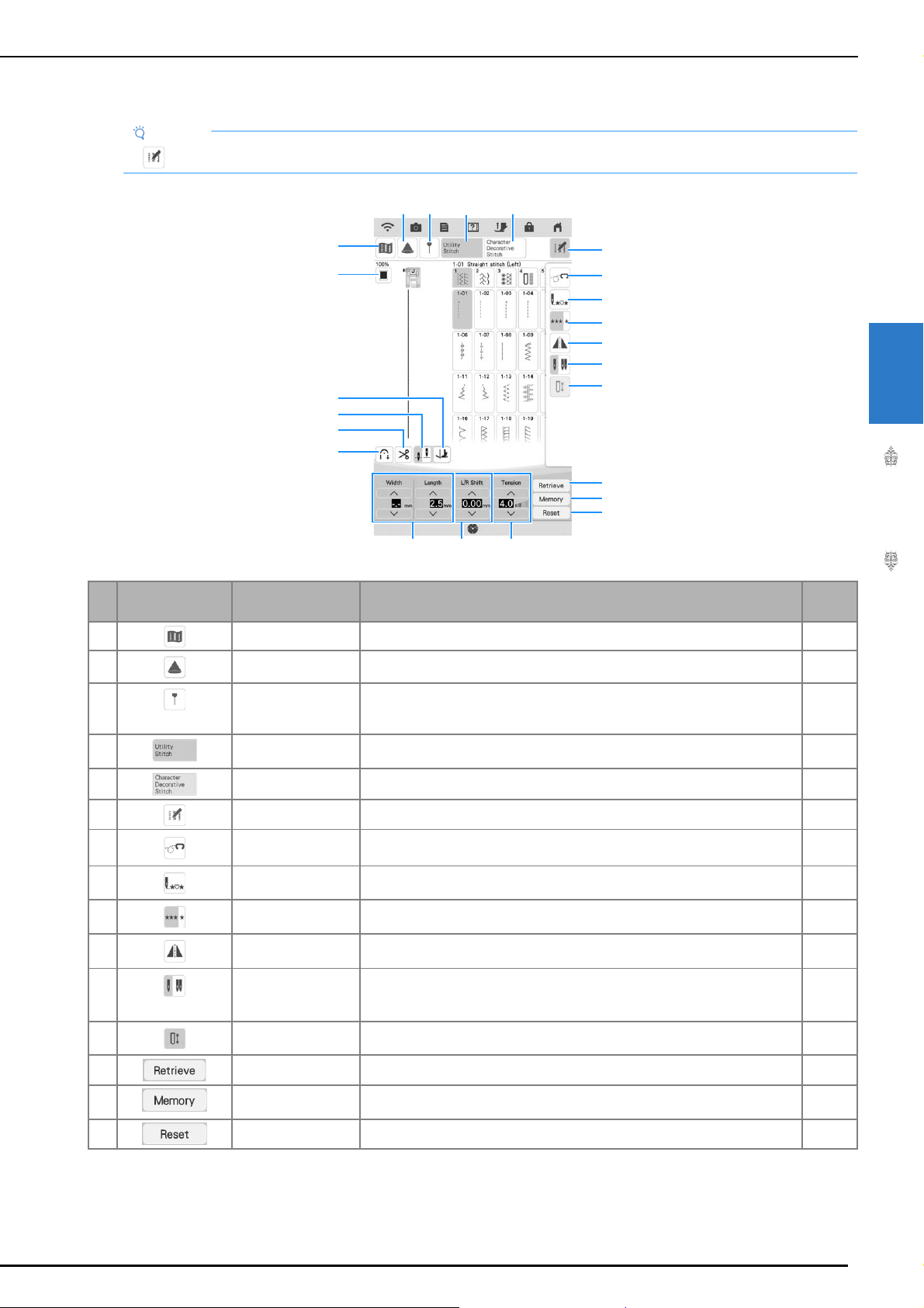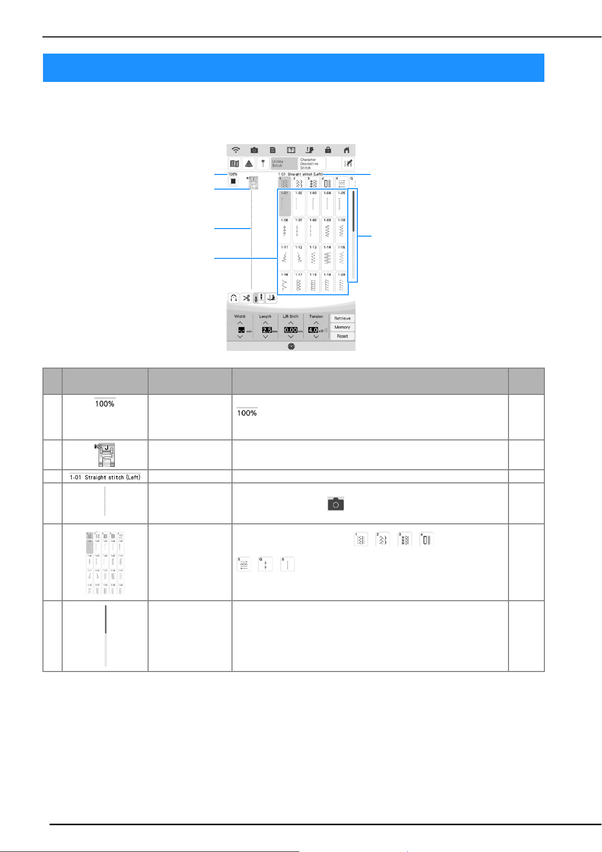 b 押え表示 押え記号を表示します。ぬう前に、ここで表示している押えを取り付けて