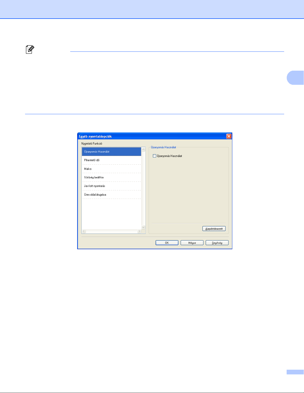 Ha a készülékhez mellékelt Windows® nyomtató-illesztőprogrammal nyomtat, a nyomtató-illesztőprogram Újranyomás Használat beállításai elsőbbséget élveznek a vezérlőpulton megadott beállításokkal