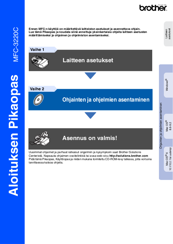 Centeristä. Napsauta ohjaimen osoitelinkkiä tai avaa web-sivu http://solutions.brother.com