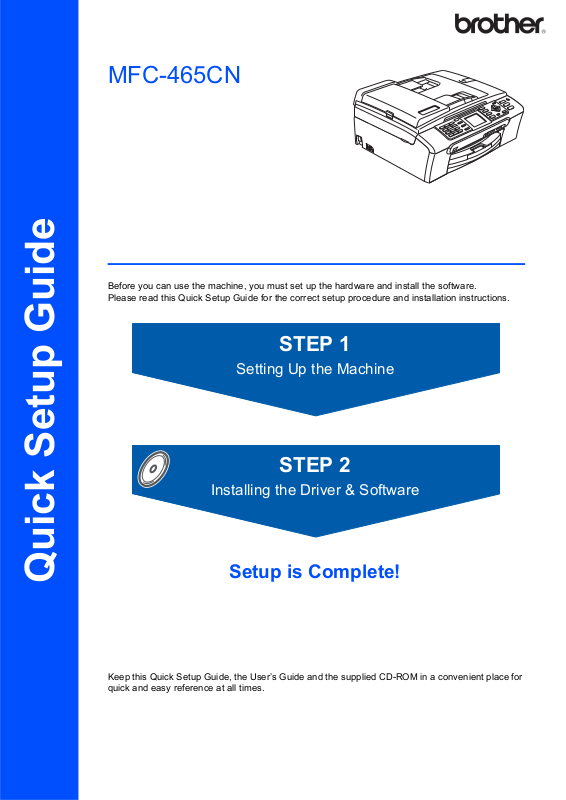 Keep this Quick Setup Guide, the User’s Guide and the supplied CD-ROM in a convenient place for