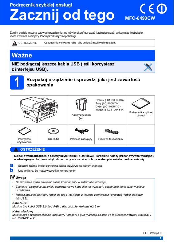 Zanim będzie można używać urządzenia, należy je skonfigurować i zainstalować, wykonując instrukcje,