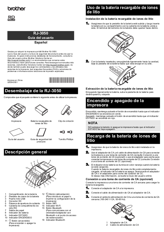 Gracias por adquirir la impresora portátil Brother RJ-3050.