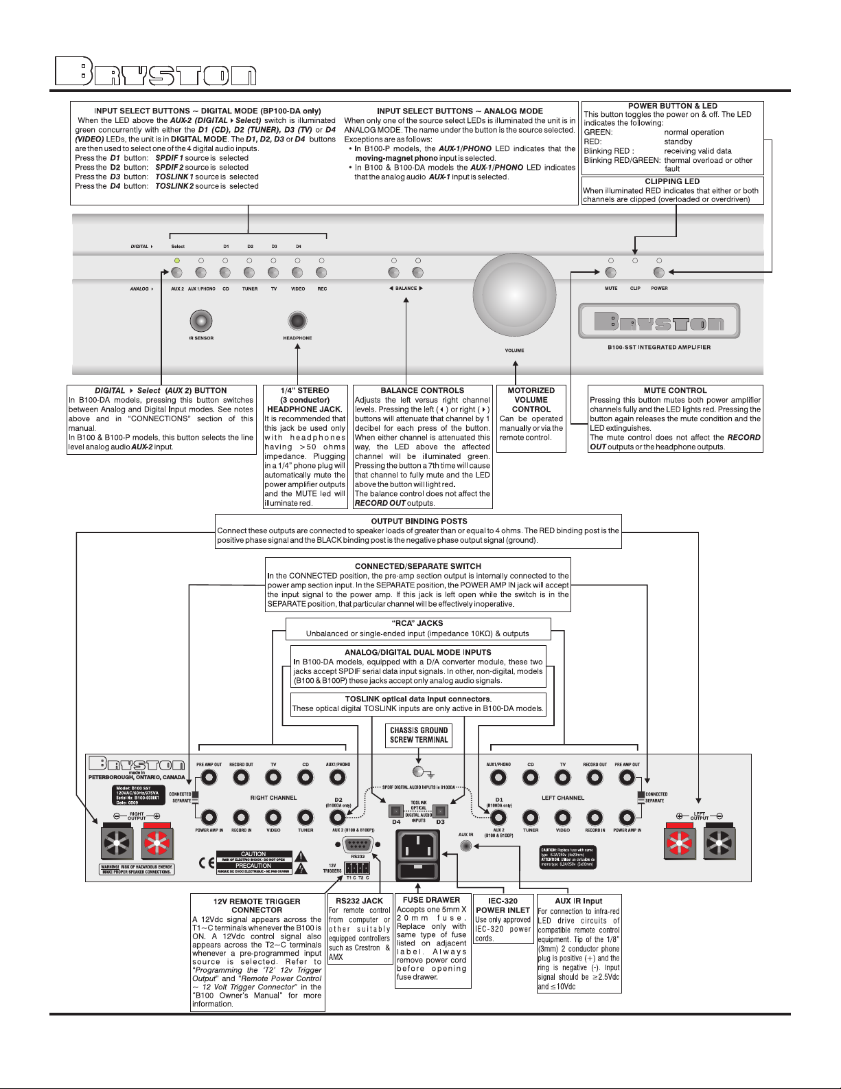 Thank you for purchasing a Bryston B100 integrated amplifier. We are confident it will provide you with many