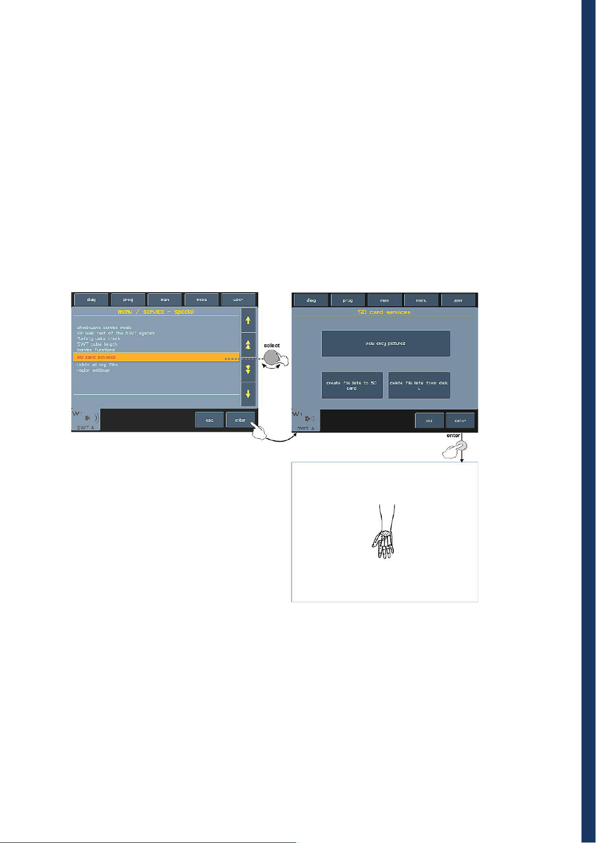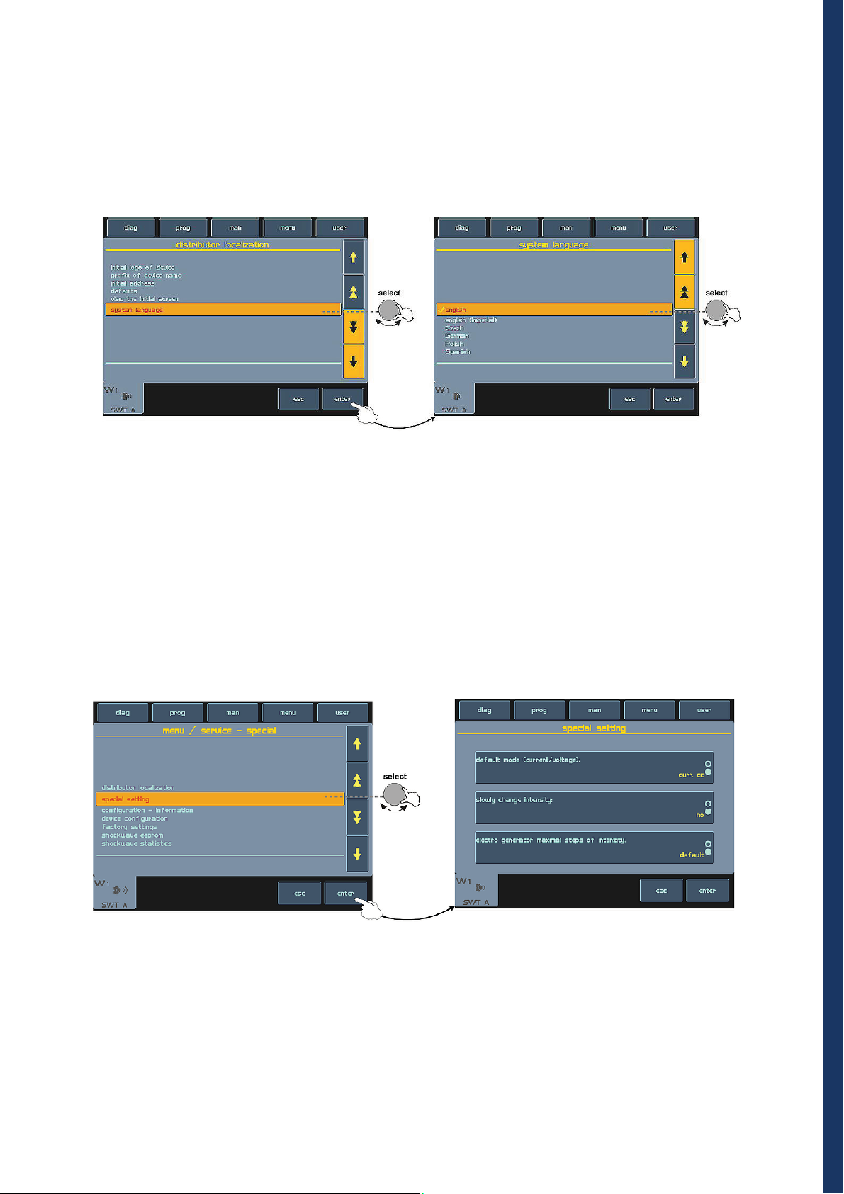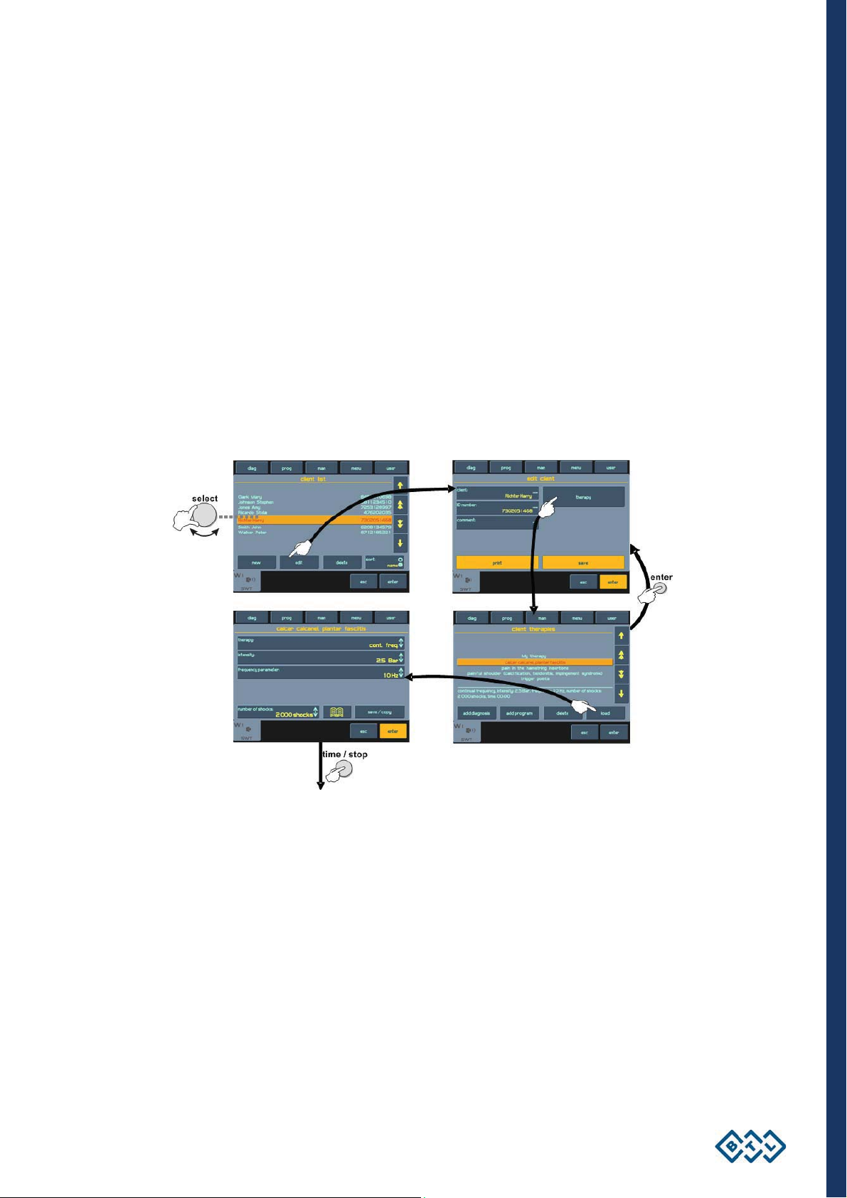 information displayed on the screen will guide you throughout the whole therapy, simply adjust the parameters by