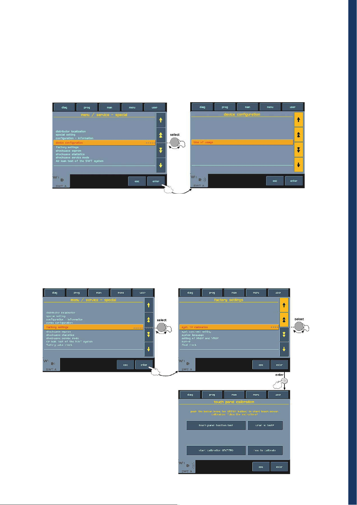 the touch screen buttons. Throughout the whole therapy, the device informs you about the therapeutical method