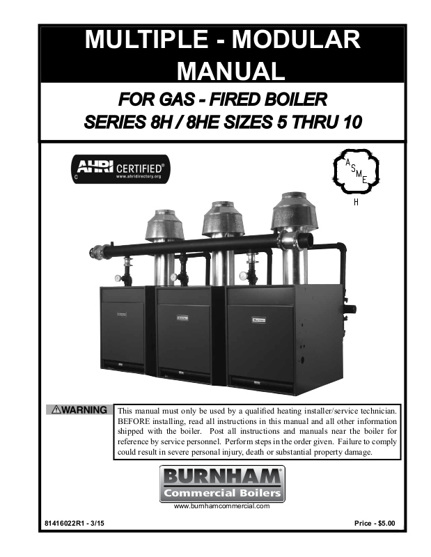 All Series 8HE cast iron boilers are designed, built, marked and tested in accordance with the ASME Boiler