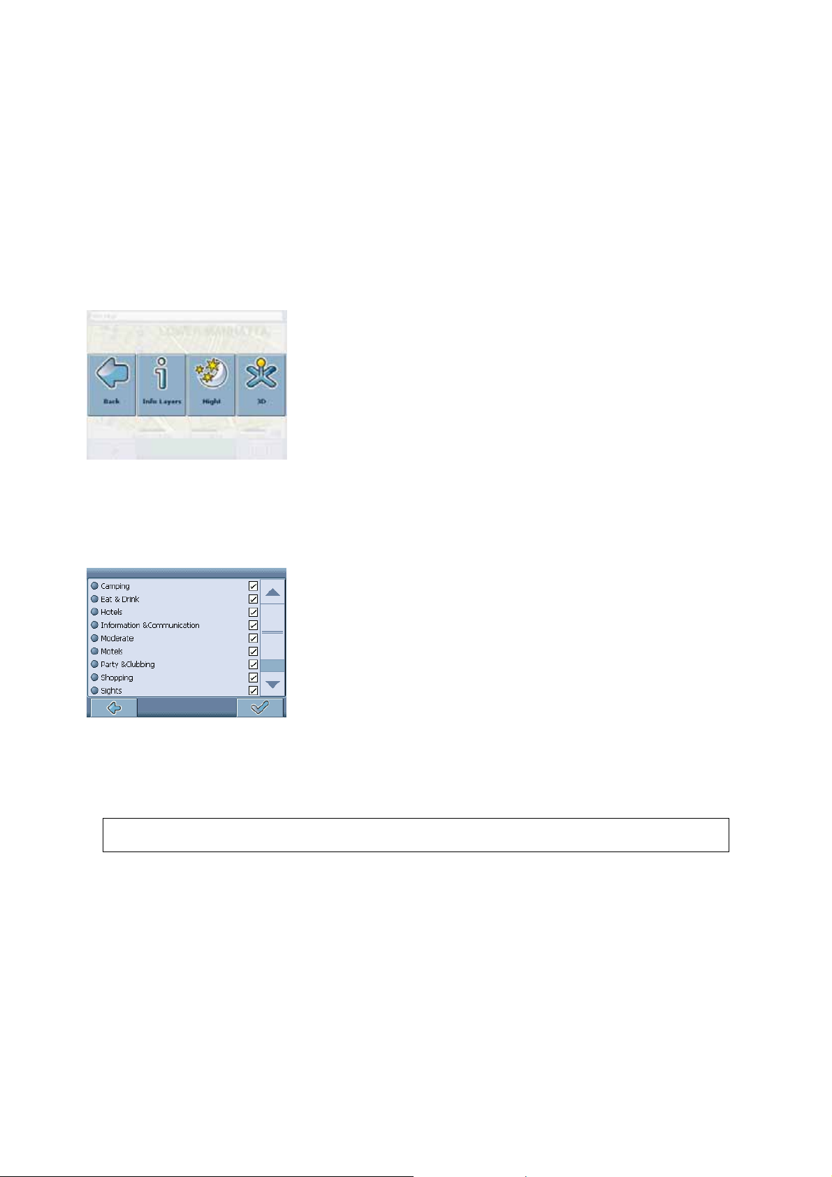 •Tap on the screen during navigation to open the navigation options (see Change settings during