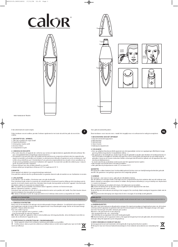Calor waarborgt dit apparaat tegen alle fouten en verborgen gebreken gedurende 1 jaar na datum van aankoop, uit gezonderd eventuelle specifieke