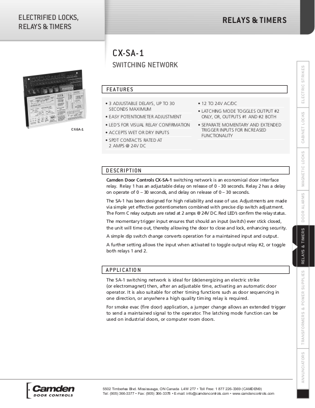 Camden Door Controls CX-SA-1 switching network is an economical door interface