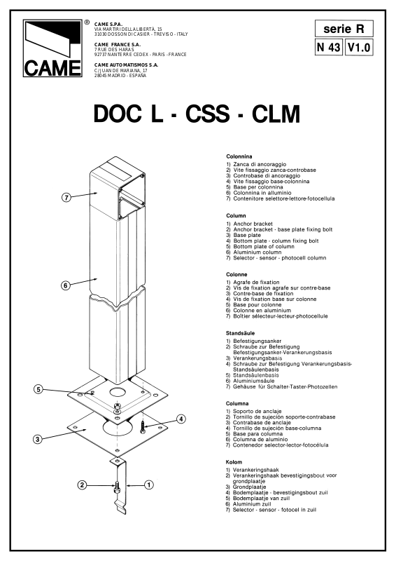 CAME CLM, CSS, DOC I, DOC L, SEM 2, SET I User Manual