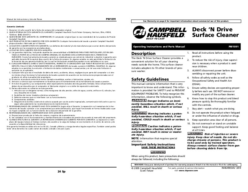 Manuel de Instrucciones y Lista de Piezas PW1091