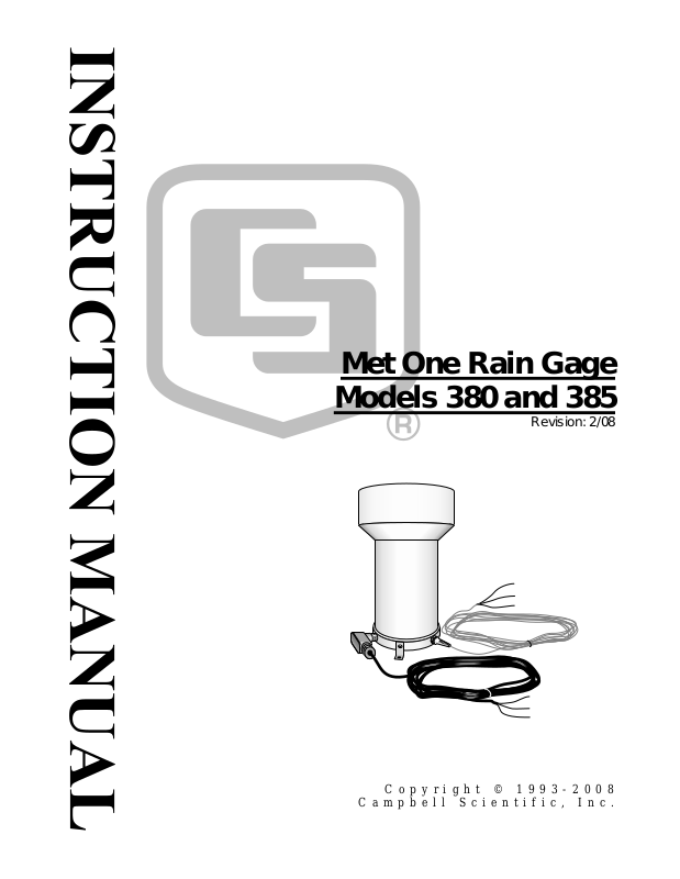 water equivalent on a continuous basis. The Model 380 rain gage is intended